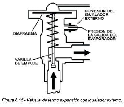 Cuando aumenta la carga térmica en el evaporador, el refrigerante alimentado por la válvula no es suficiente y se sobrecalienta, esto aumenta la presión del bulbo y hace que la válvula abra más, permitiendo que pase más líquido. Por el contrario, si la carga térmica en el evaporador disminuye, el refrigerante que está alimentando la válvula no se alcanza a evaporar y disminuye su sobrecalentamiento; esto hace que reduzca la presión del bulbo, se cierre la válvula y se reduzca el flujo de líquido. Es importante mencionar que al variar la carga térmica del evaporador, también varía la presión dentro del mismo. Si aumenta la carga, disminuye la presión, y si disminuye la carga, se reduce la presión.