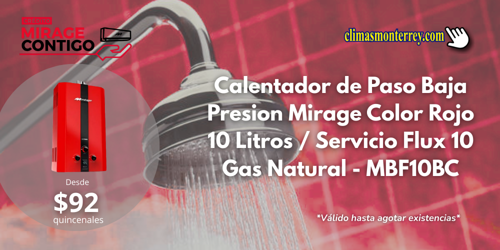 * Modelo MBF16NB Descripción Serie FLUX, 16L/min, Gas LP, Color Rojo