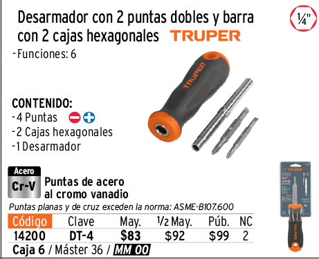 Desarmador 2 puntas dobles y barra con 2 cajas hexagonales - 14200 - DT-4 - Caja con 6 Set – Master 36
