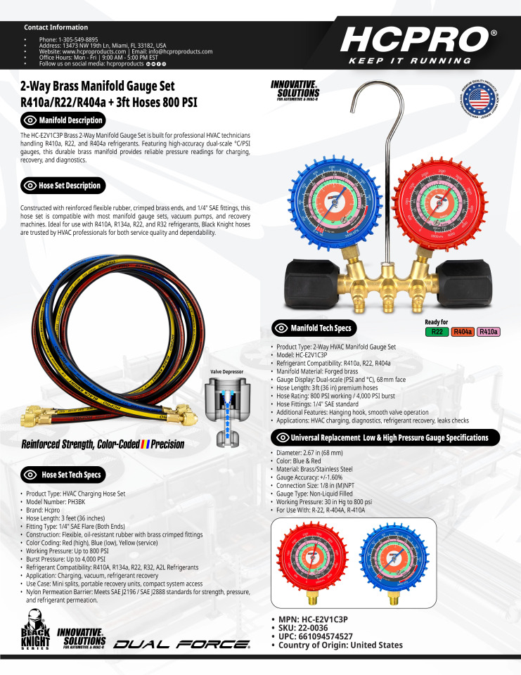 ¡Precisión, durabilidad y compatibilidad en una sola herramienta! Ideal para técnicos en refrigeración y aire acondicionado que buscan mediciones confiables y trabajo profesional.