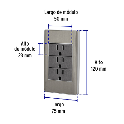 Placa Armada Acero Inox. 3 Contactos 1 Módulo, Lisboa, 47850 - PA-COTR-LA