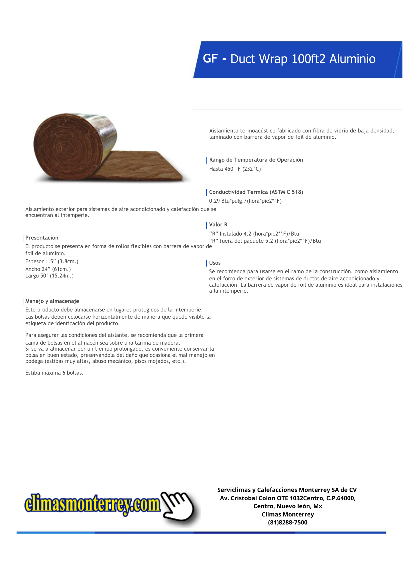 Fibra de Vidrio Aluminio FOIL T-75 1.5"(0.038) X 24"(0.61) X 50'(15.24) - HVFVDW15250
